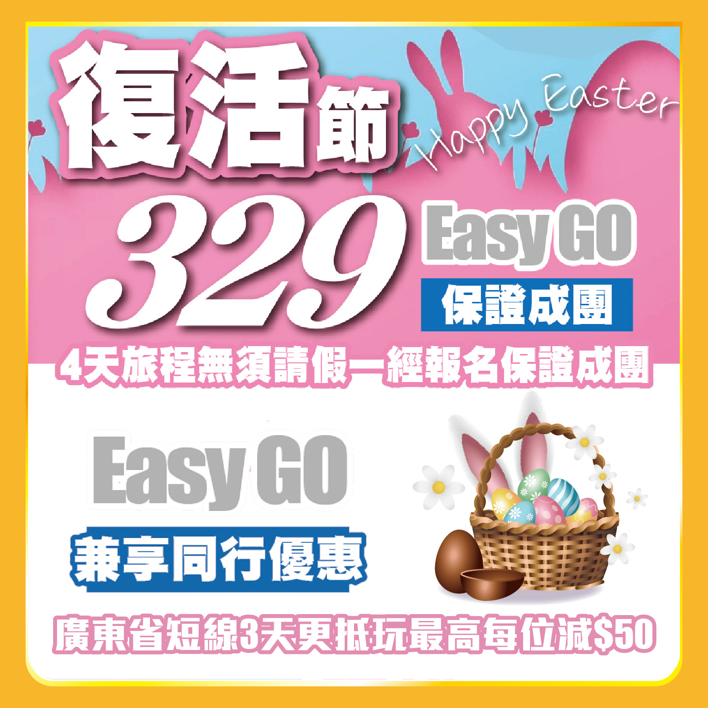 Happy Easter【復活節加班】4月3-7日出發 純玩2/3天 只需269+!