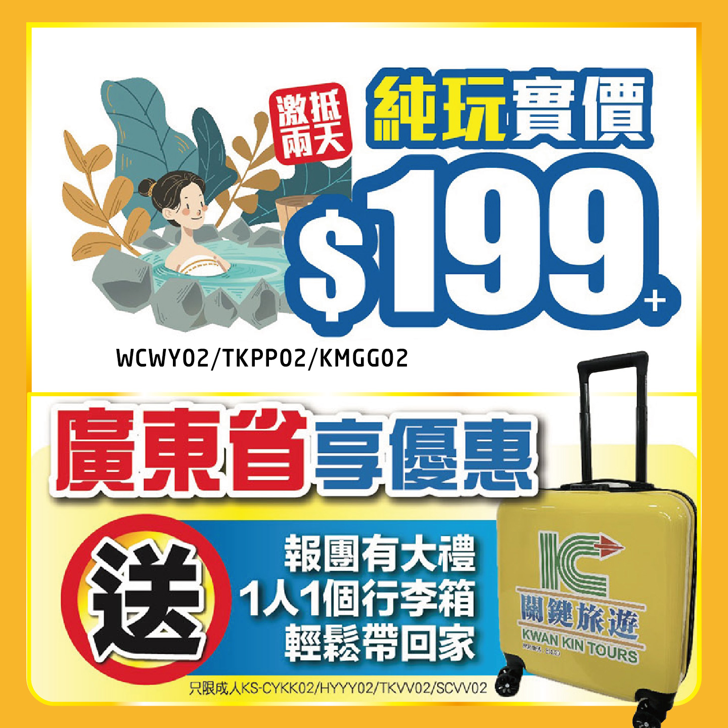 激抵純玩2天實價$199+;廣東省內享優惠,報團有大禮,送1人1個行李箱,輕鬆貸回家;樂玩濟州島、精選越南峴港、富國島;縱橫神州,中國遊本週真優惠!2024-03-25