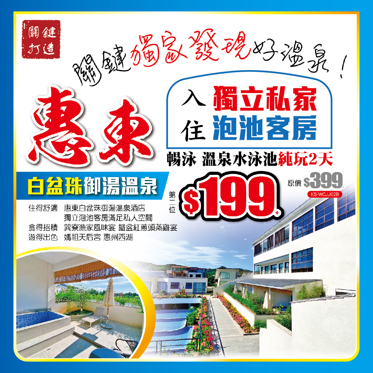 關鍵打造!獨家發現好溫泉!惠東白盆珠御湯溫泉,入住獨立私家泡池客房,暢泳溫泉水泳池,純玩2天,原價$399,二人同行優惠第二位$199!2024-04-25