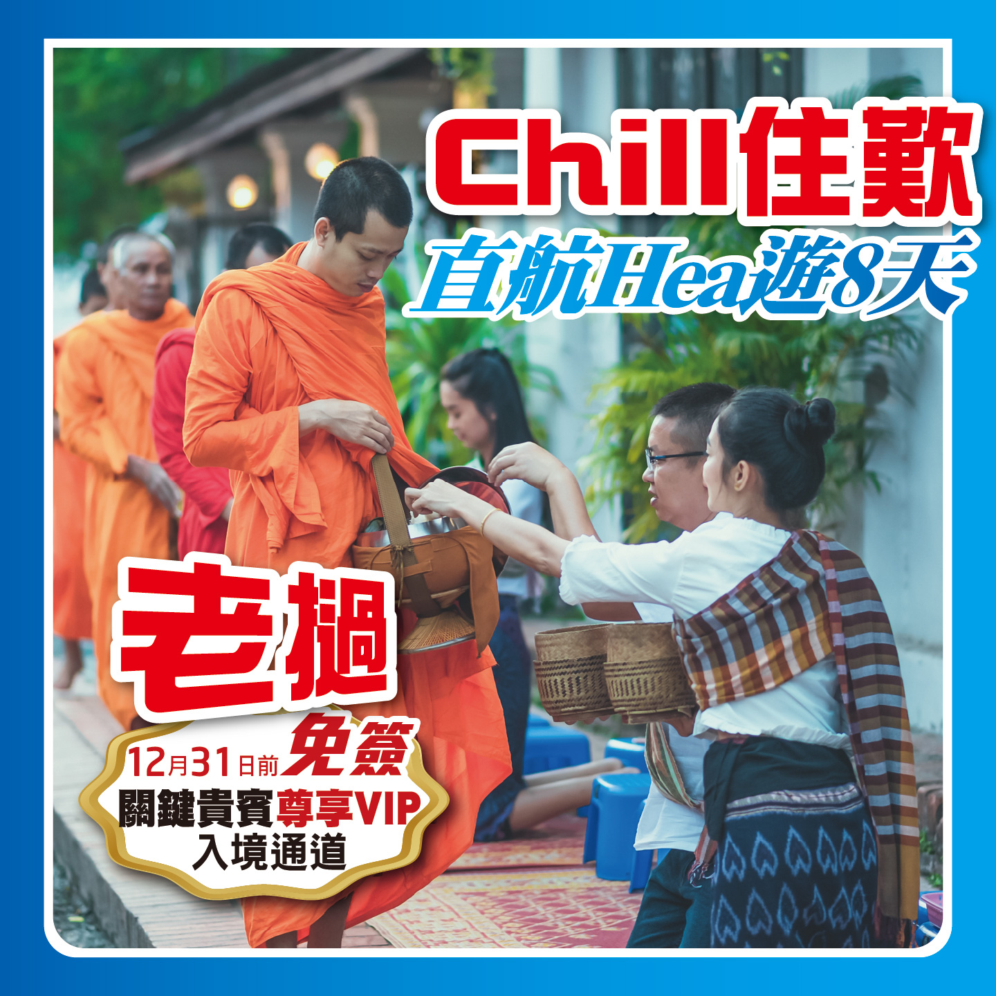 老撾Chill住歎 直航Hea遊8天 入境免簽證 關鍵貴賓尊享VIP入境通道,只限持指定護照之旅客!2024-07-17