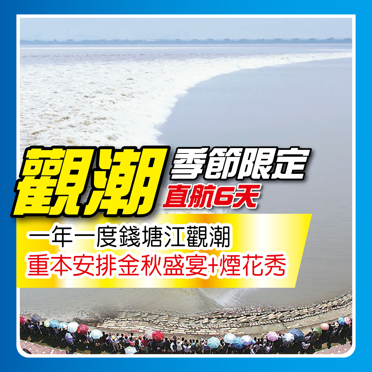 華東觀潮 季節限定!一年一度錢塘江觀潮,全程入住準5星,重本安排金秋盛宴+煙花秀;2024-07-25