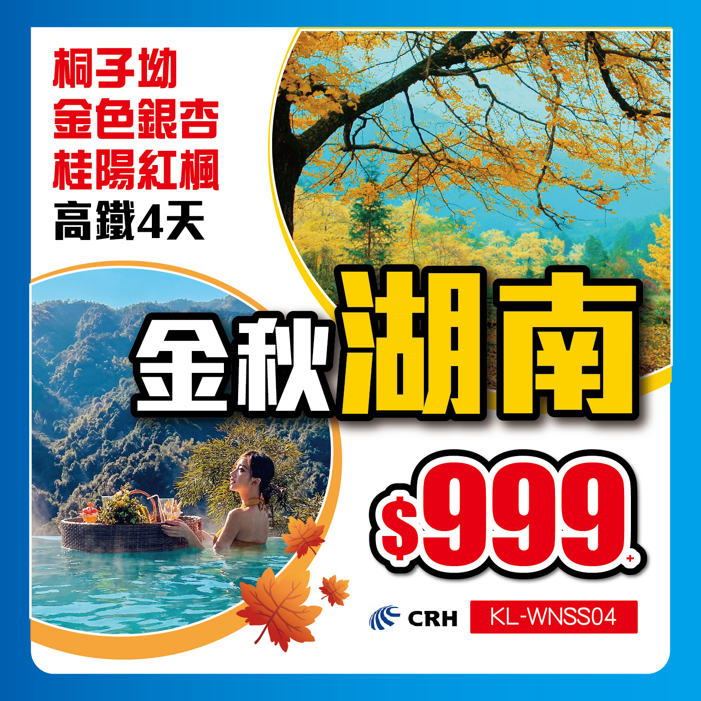 金秋湖南-桐子坳、金色銀杏、貴陽紅楓 高鐵4天, KL-WNSS04 $999;覽盡金秋美景!廣東省內豪歎自助餐!2024-08-06