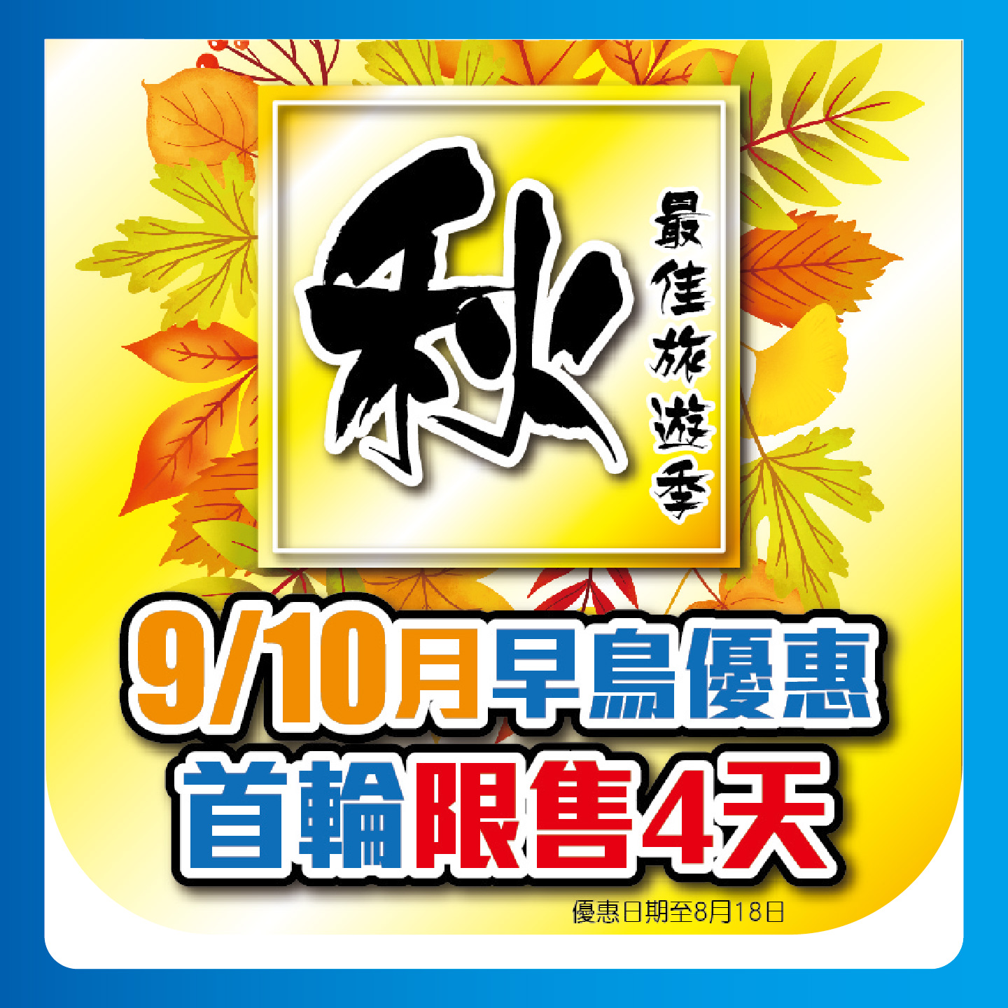 金秋早鳥優惠第2擊 限售4天,優惠日期至8月25日;2024-08-22