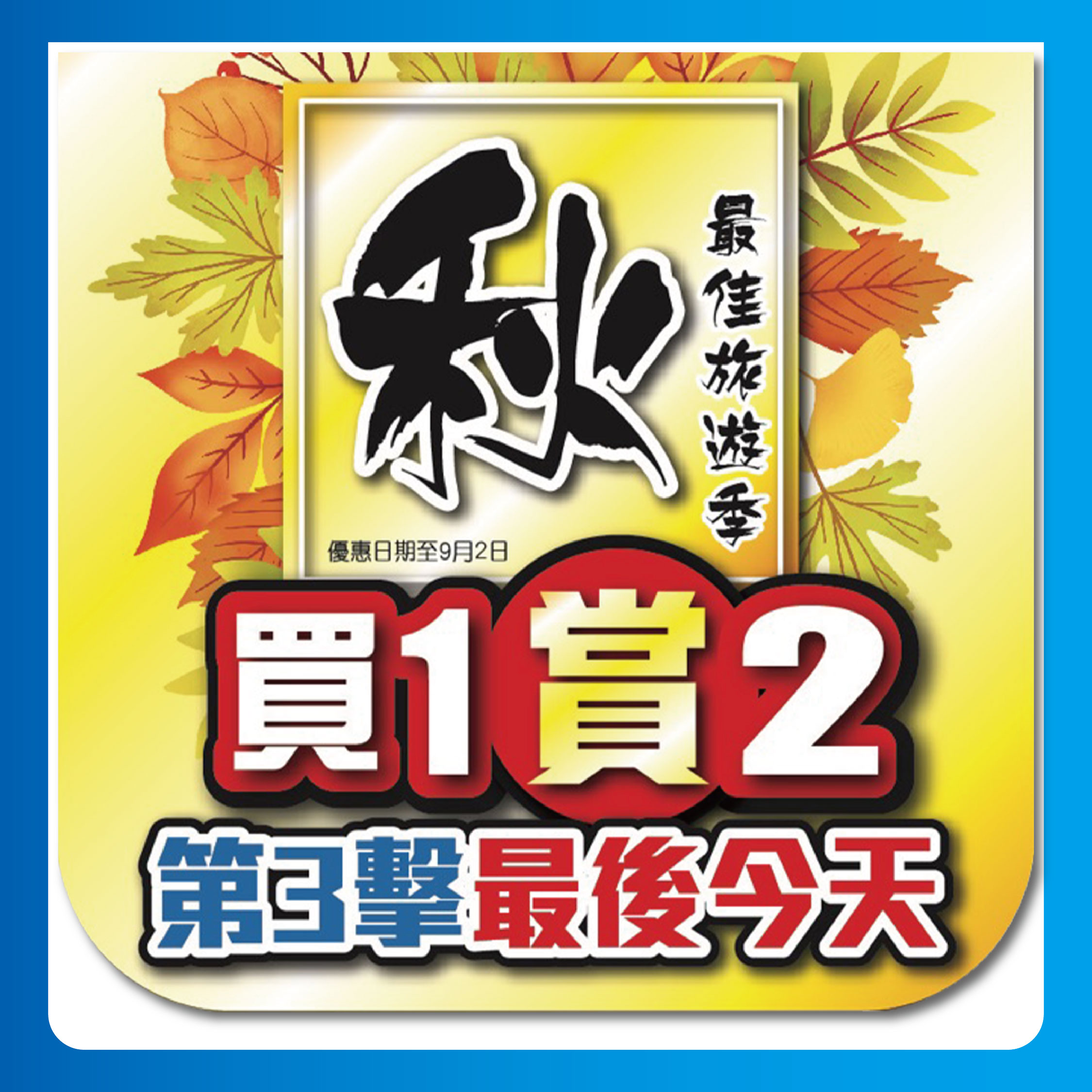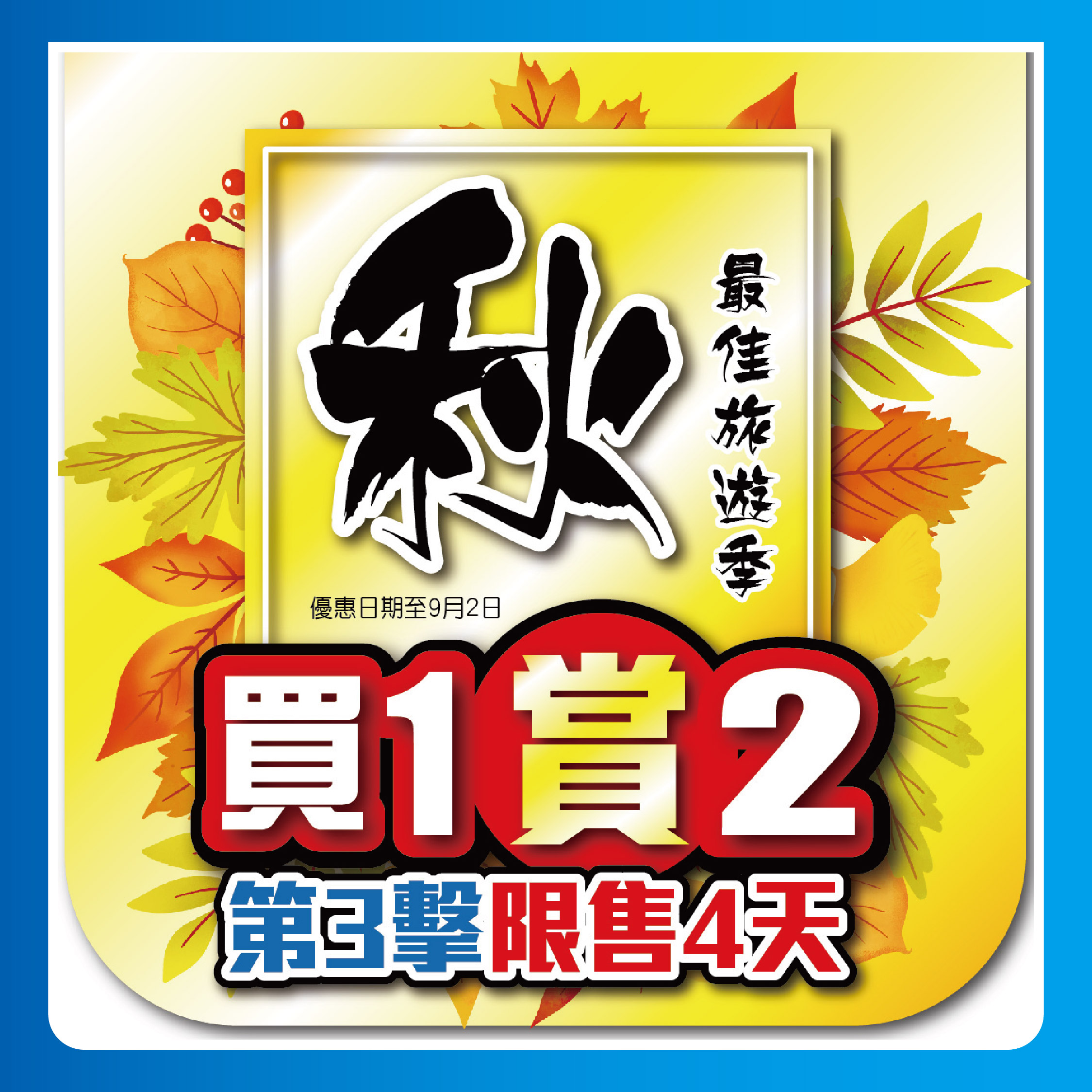 第3擊!買1賞2!限售4天,優惠日期至9月2日。