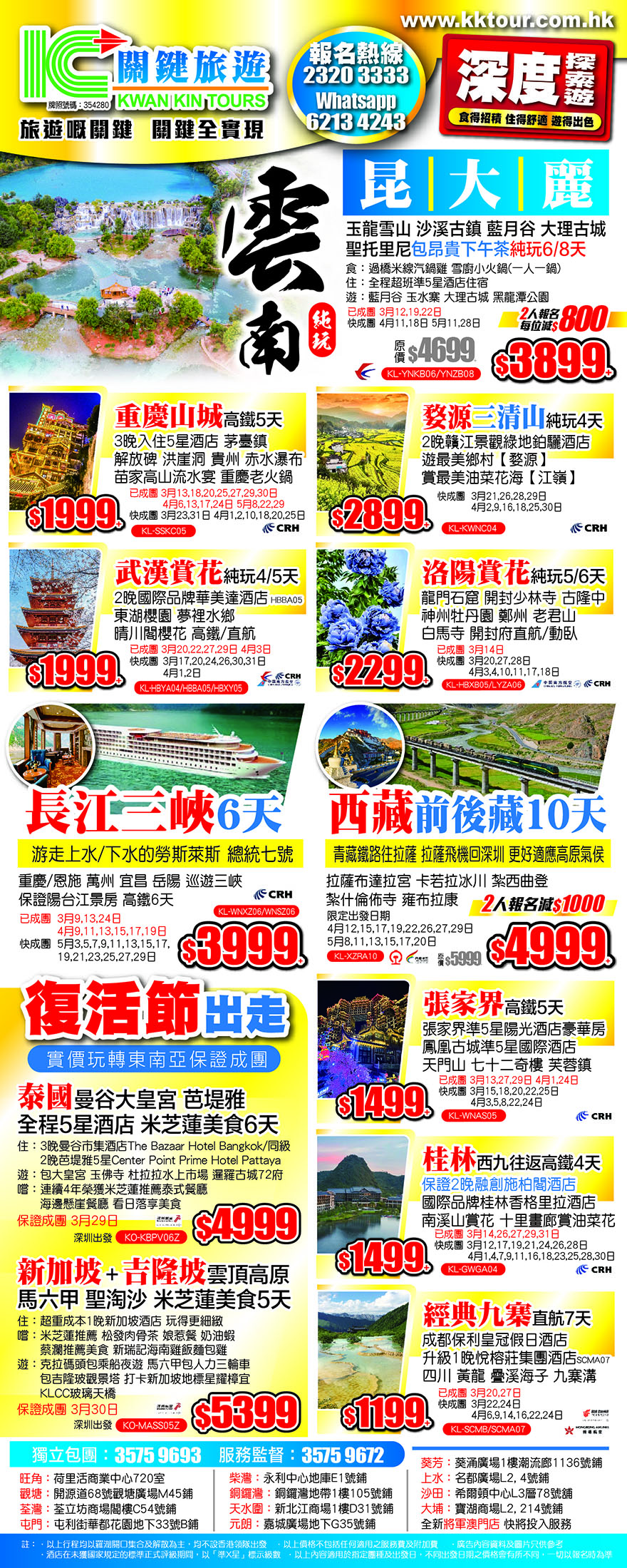 服務監督 : 3575 9672 聯絡郵箱 : admin@kktour.com.hk