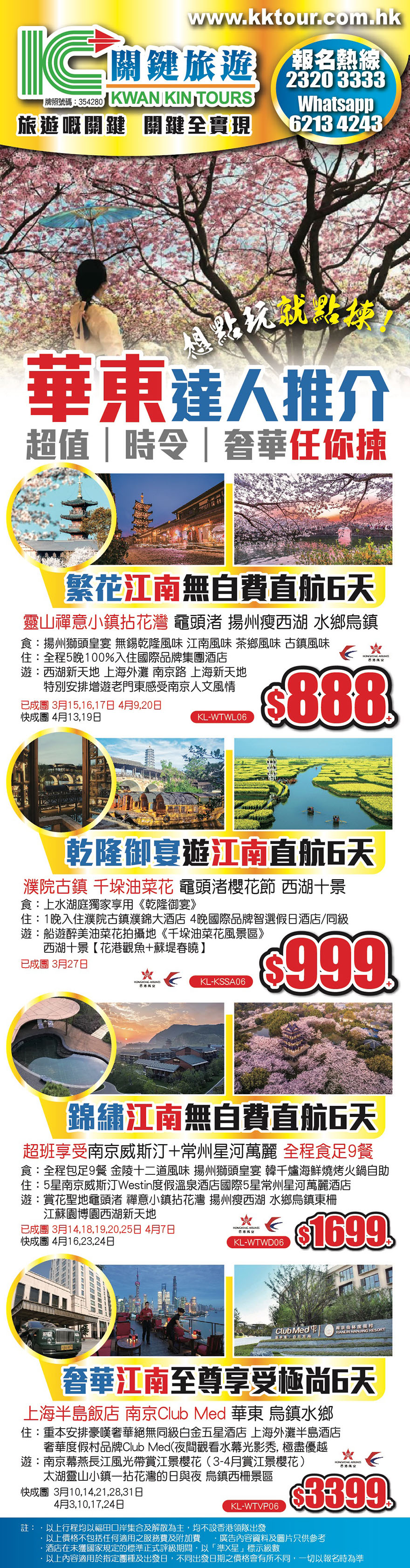 服務監督 : 3575 9672 聯絡郵箱 : admin@kktour.com.hk