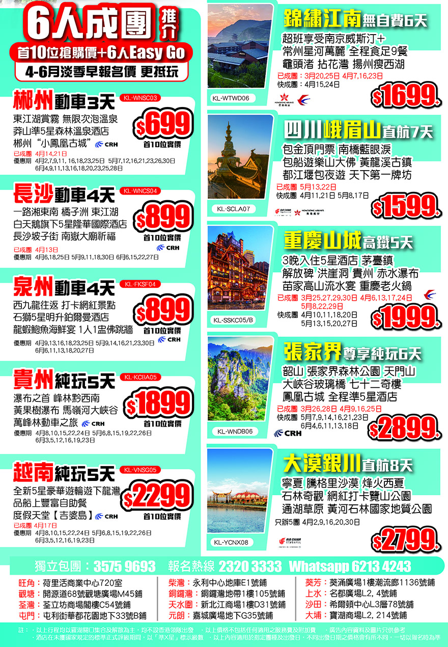 熱線電話 : 2320 3333 旅遊咨詢 WhatsApp : 6745 3024 / 6213 4243