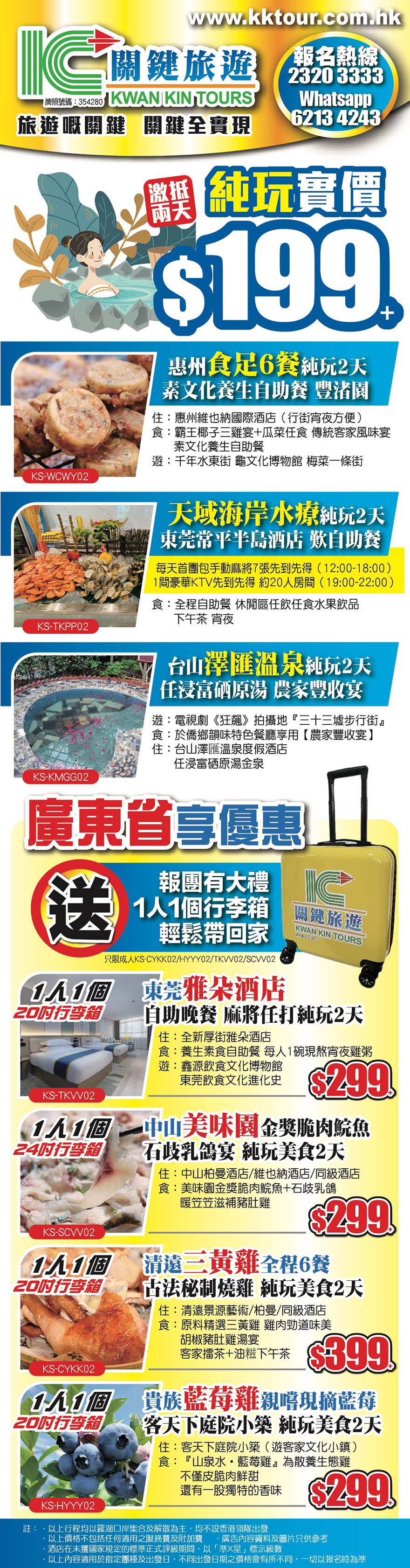 激抵純玩2天實價$199+;廣東省內享優惠,報團有大禮,送1人1個行李箱,輕鬆貸回家;樂玩濟州島、精選越南峴港、富國島;縱橫神州,中國遊本週真優惠!2024-03-25