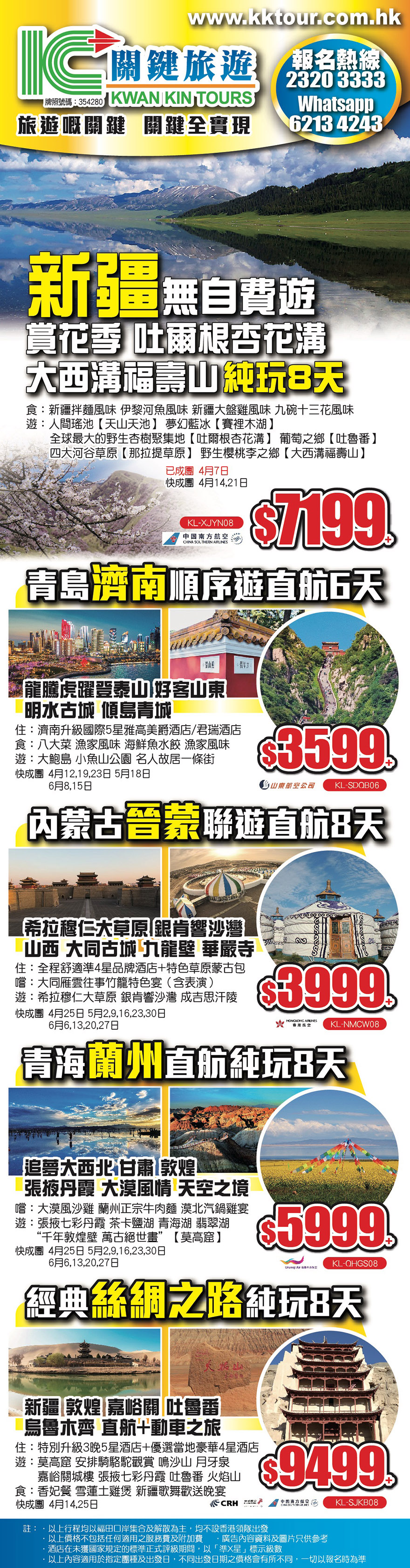服務監督 : 3575 9672 聯絡郵箱 : admin@kktour.com.hk