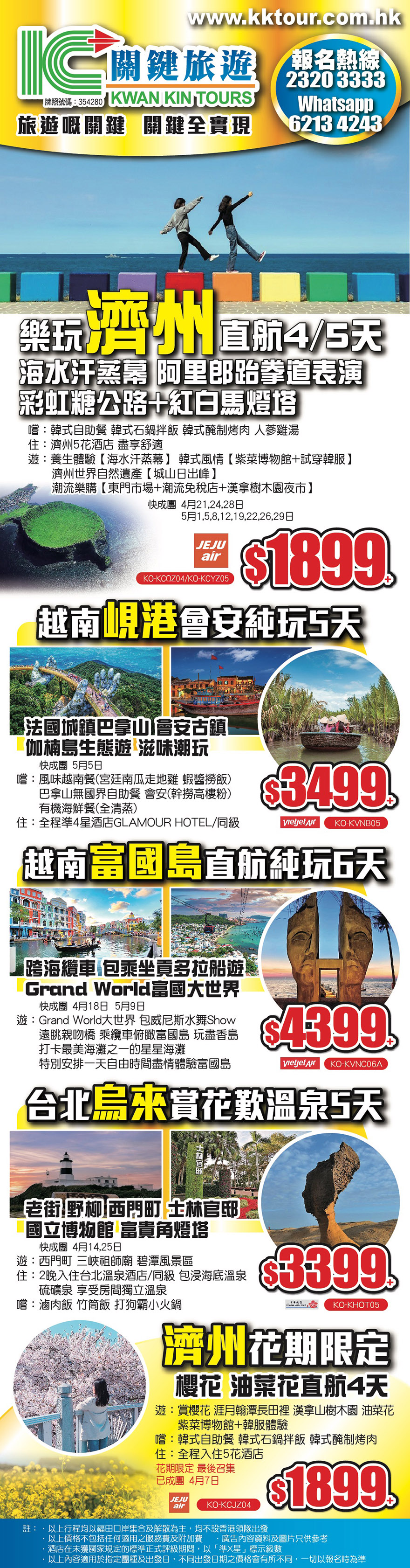 熱線電話 : 2320 3333 旅遊咨詢 WhatsApp : 6745 3024 / 6213 4243