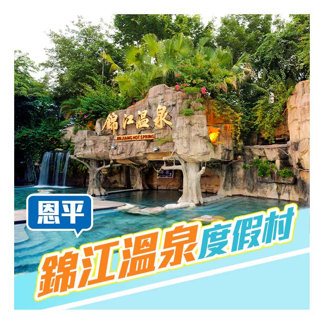 恩平【錦江溫泉度假村】 激玩夏日大型動感溫泉(沖浪 冰泉 冷熱溫泉瀑布)純玩2天 只要239起!