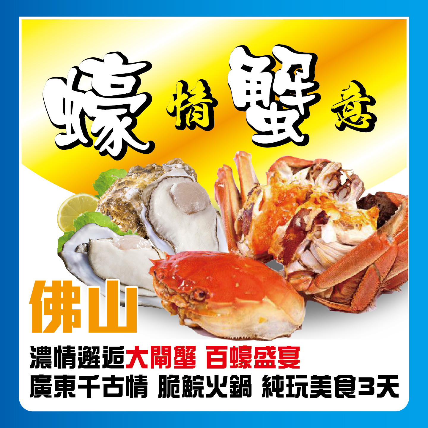 蠔情蟹意!佛山濃情邂逅大閘蟹 百蠔盛宴 廣東千古情 脆鯇火鍋 純玩美食3天!更有登頂武當、極緻莫干山奢華住宿、金秋北京、越南峴港夜遊會安古城,任你選!2024-09-24