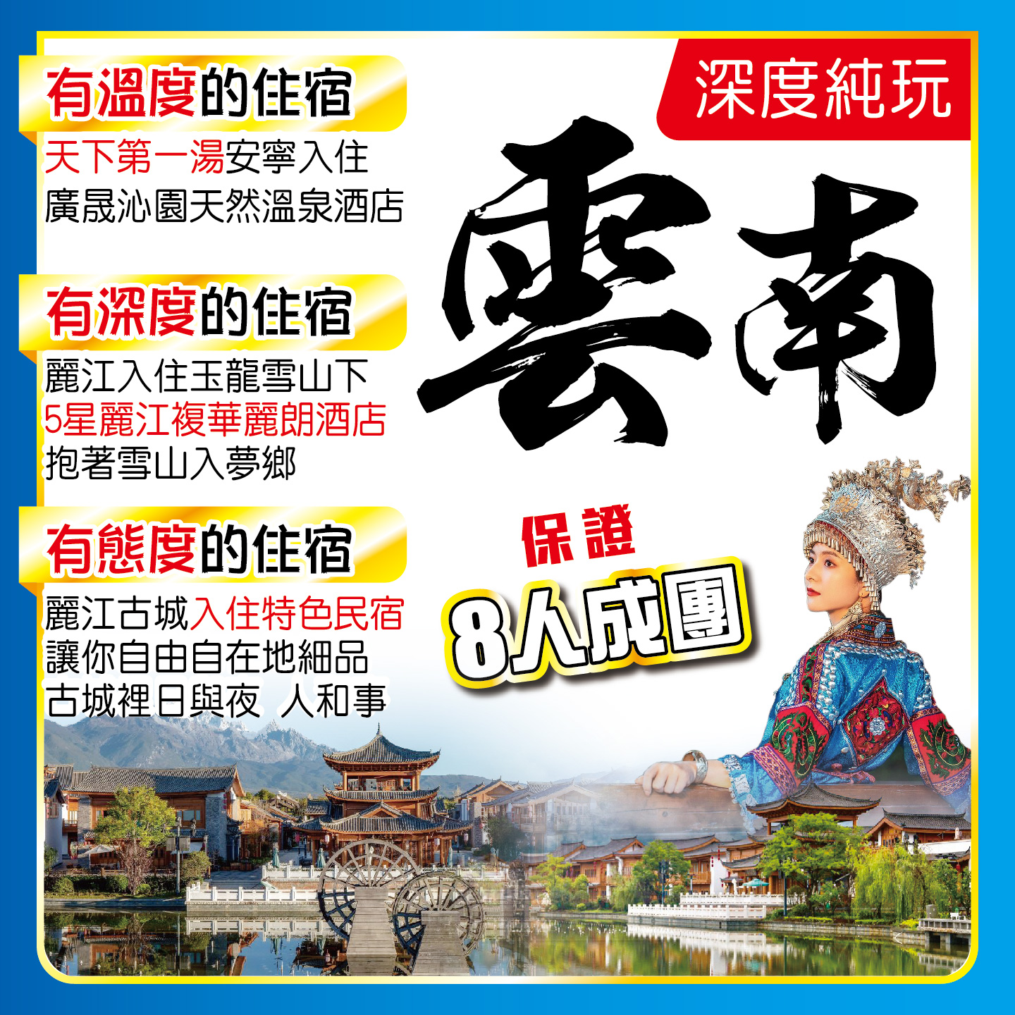 雲南深度純玩,保證8人成團,實價$3999,有溫度的住宿、有深度的住宿、有態度的住宿;華東別樣江南,吃在洲際深坑、住在洲際深坑;2024-05-17