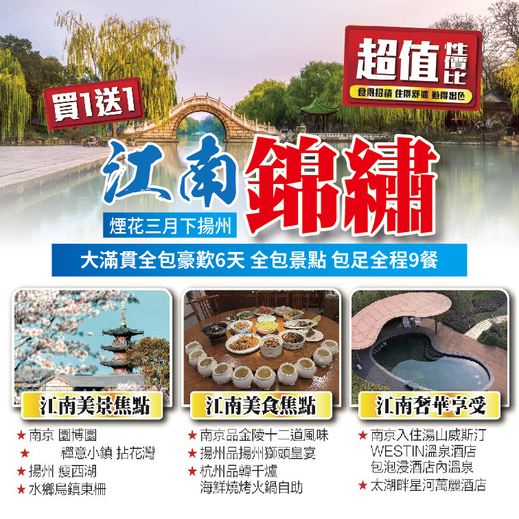 江南錦繡 煙花三月下揚州 買一送一 超值性價比- 2024/02/22 資訊