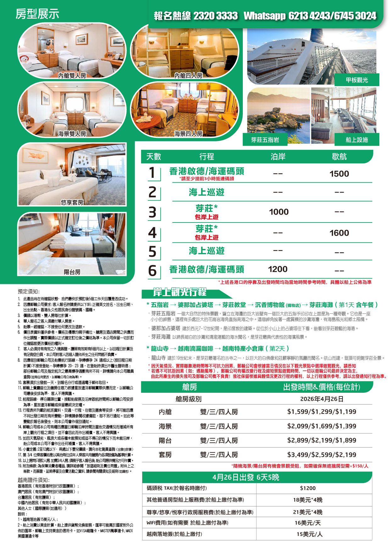 熱線電話 : 2320 3333 旅遊咨詢 WhatsApp : 6745 3024 / 6213 4243