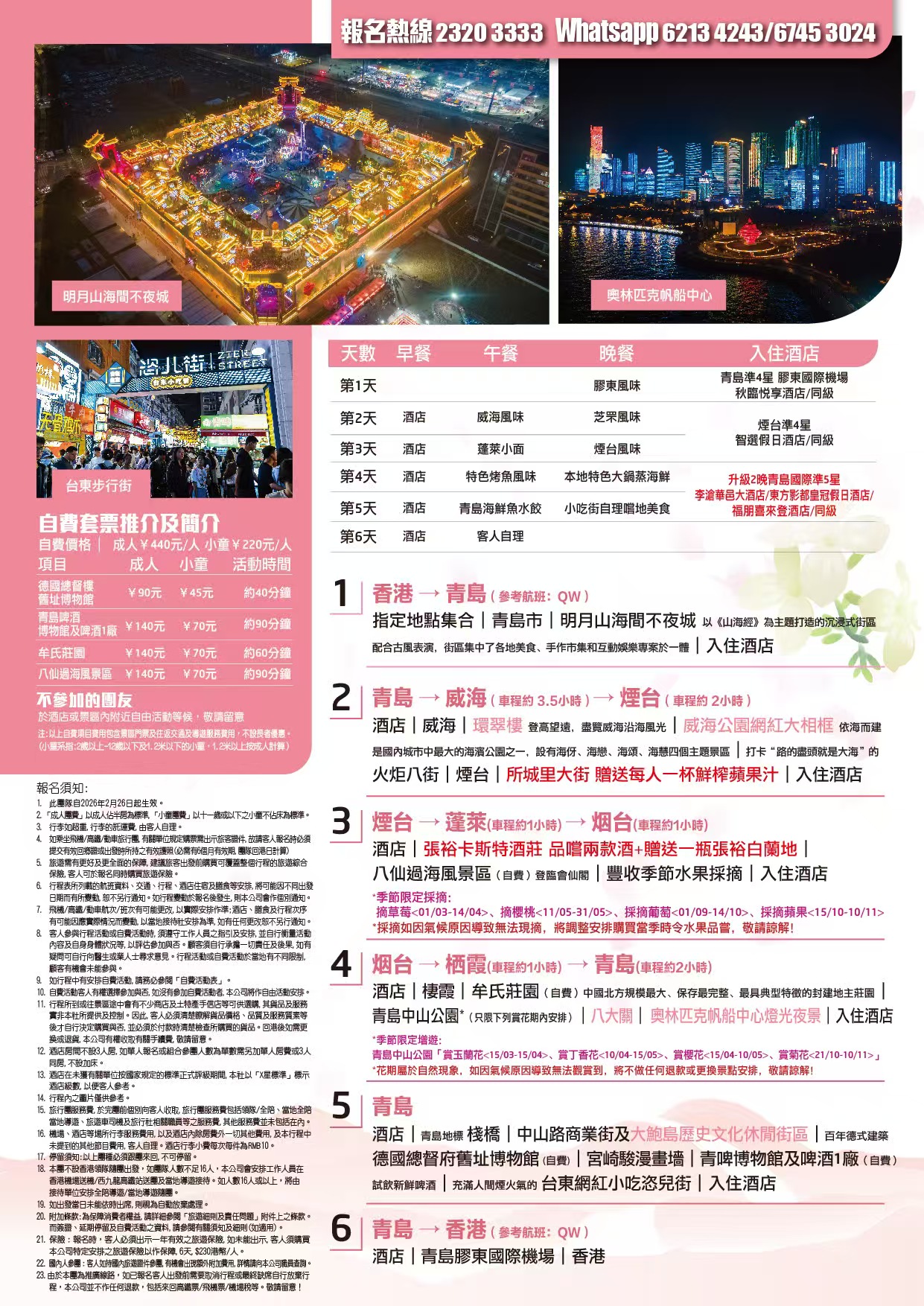 | 時間 | 成人價 | 小童價 | 團隊情況 | |