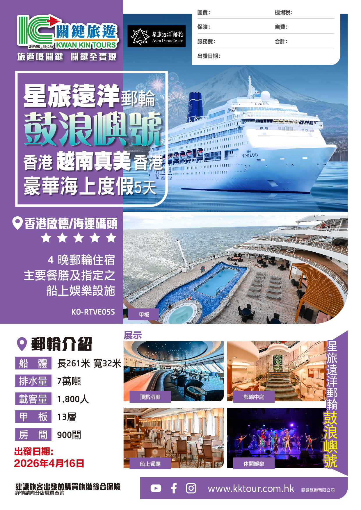 星旅遠洋【鼓浪嶼號】 香港-越南真美-香港 5天4晚岸上自由行 郵輪假期船票