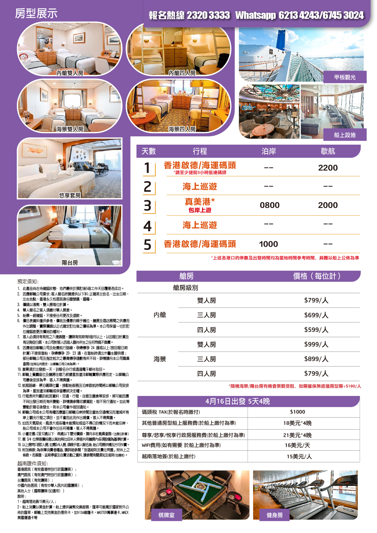熱線電話 : 2320 3333 旅遊咨詢 WhatsApp : 6745 3024 / 6213 4243